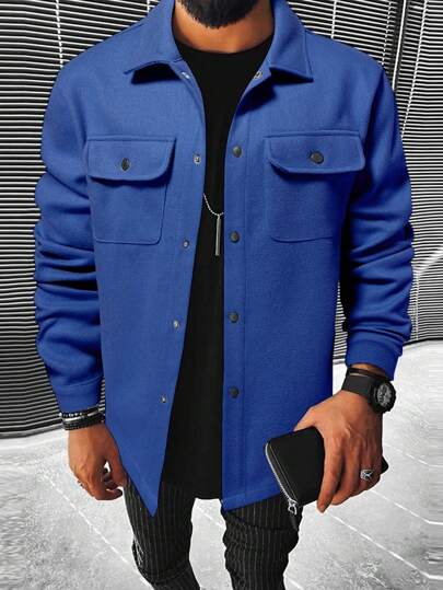 Manfinity Homme Men Flap Pocket Overcoat - Blue - View 1