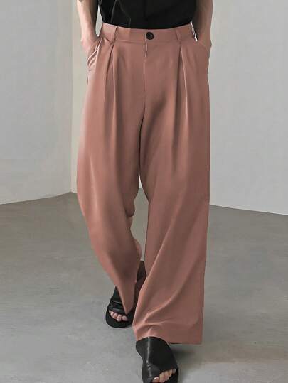 Manfinity Loose Fit Men's Folded Pleated Slant Pocket Pants - Redwood - View 1