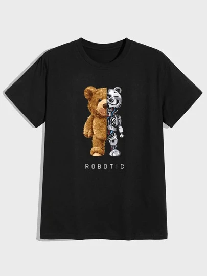Manfinity Hypemode Men Letter & Cartoon Graphic Tee - Black - View 1