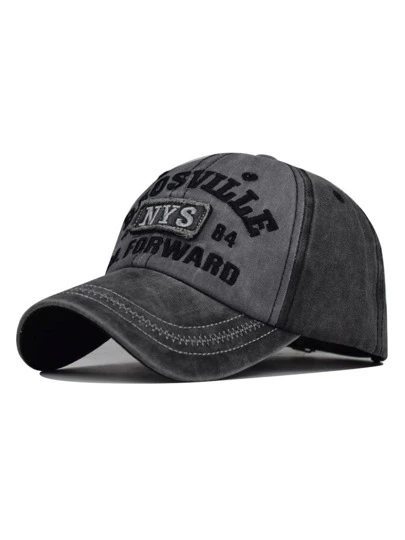 Men Letter Embroidered Washed Casual Baseball Cap For Daily Life Street - Black - View 1