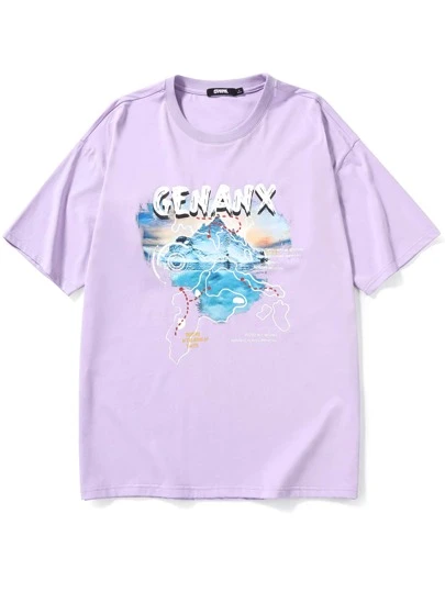 Men Letter Graphic Drop Shoulder Tee - Lilac Purple - View 1