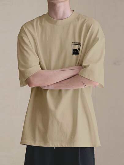 Manfinity Hypemode Men Letter Graphic Mock Neck Tee - Apricot - View 1