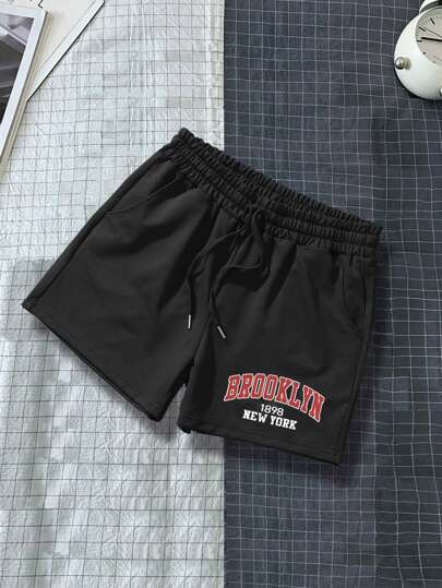Aesthetic Post--Men Letter Graphic Shorts - Black - View 1
