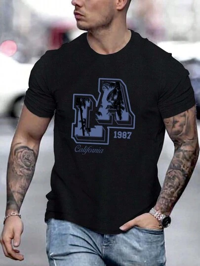 Men Letter Graphic Tee - Black - View 1
