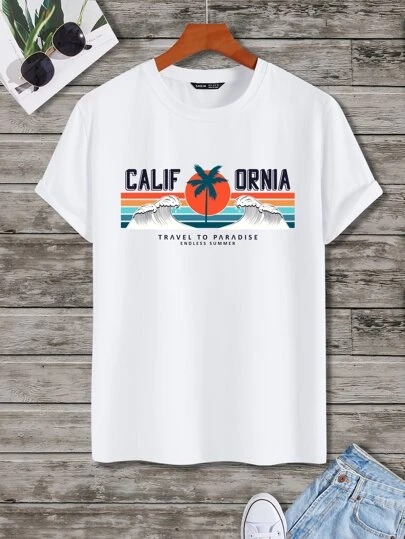 Manfinity Men Letter & Tropical Print Tee - White - View 1