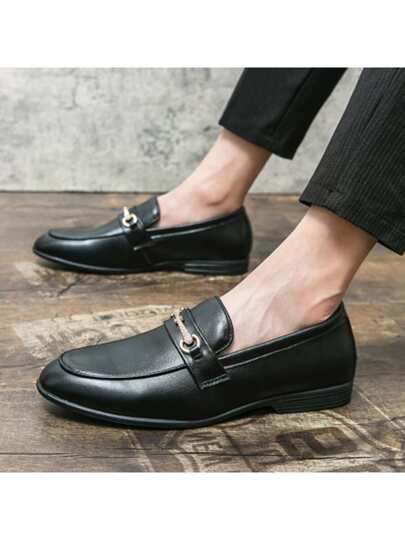 Men Metal Decor Dress Loafers, Fashion Dress Shoes - Black - View 1