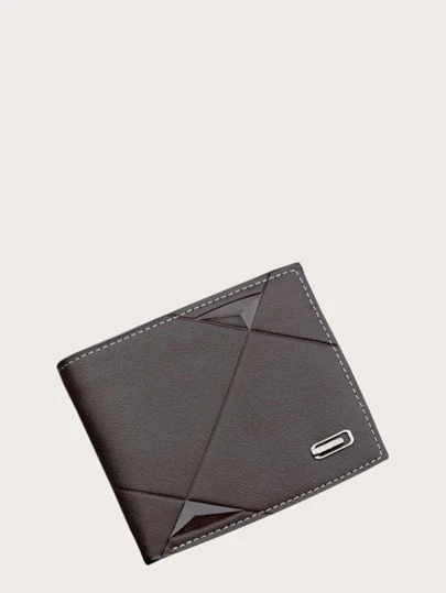 Men Metal Decor Fold Over Purse - Brown - View 1