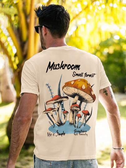 Men Mushroom & Letter Graphic Tee - Apricot - View 1