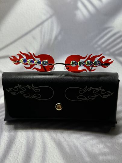 Men Rhinestone Decor Flame Lens Design Fashion Glasses - Multicolor - View 1
