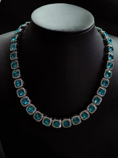 Men Rhinestone Decor Necklace Punk Hip Pop Style, For Jewelry Gift And Party - Multicolor - View 1