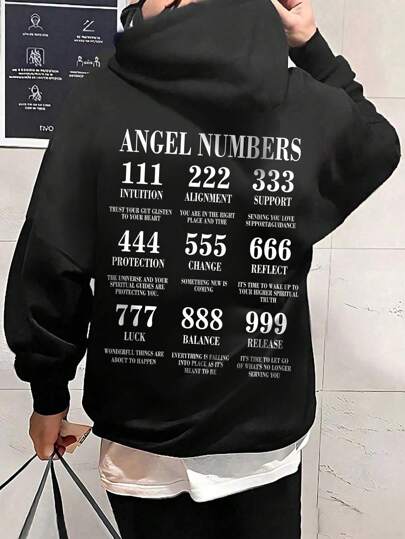 Manfinity Hypemode Loose Fit Men's Letter Print Zip Up Hooded Sweatshirt With Drawstring - Black - View 6