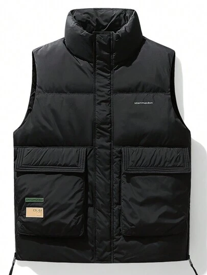 Men's Winter Front Pocket Down Vest Jacket With Flap - Black - View 1
