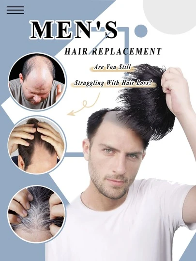 Men Short Straight Synthetic Hair Topper - Black - View 3
