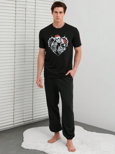 RueChic Men Skeleton Print Lounge Set - Black - View 1