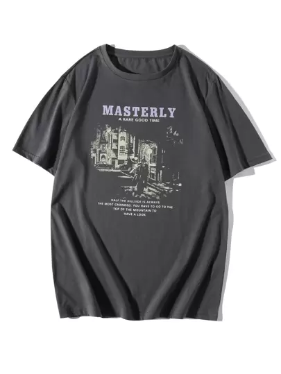 Manfinity Hypemode Men Slogan And Figure Graphic Tee - Dark Grey - View 1