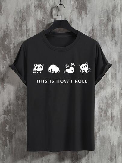 Manfinity Men Slogan & Cartoon Graphic Tee - Black - View 1