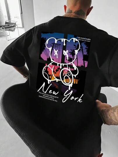 Manfinity EMRG Men Plus Slogan & Cartoon Graphic Tee - Black - View 4