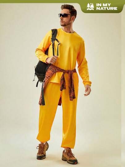 In My Nature Men Slogan Graphic Tee & Sweatpants - Yellow - View 1