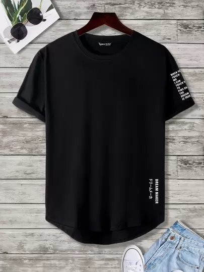 Manfinity Homme Men Slogan Graphic Tee - Black - View 1