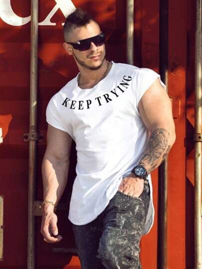 Manfinity Sport Corelite Men Letter Graphic Sports Tee - White - View 2