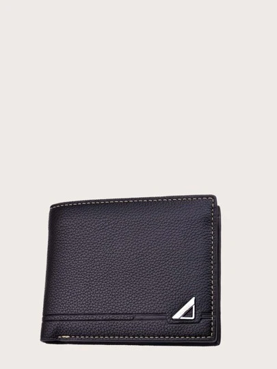 Men Stitch Trim Short Purse - Black - View 1