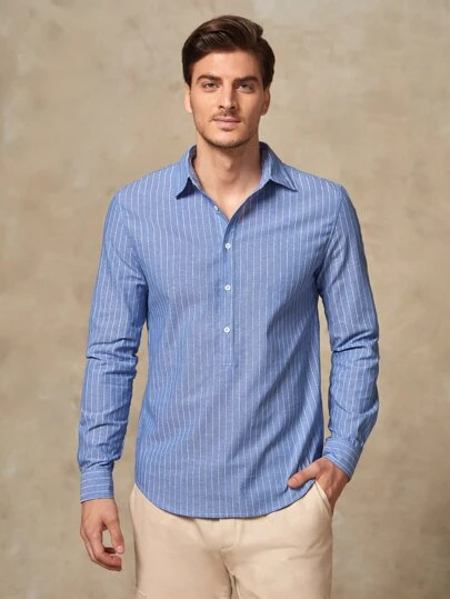GENTILAND Men Striped Print Shirt - Blue - View 1