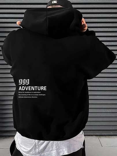 Manfinity Hypemode Loose Men's Slogan Graphic Drop Shoulder Drawstring Hoodie - Black - View 1