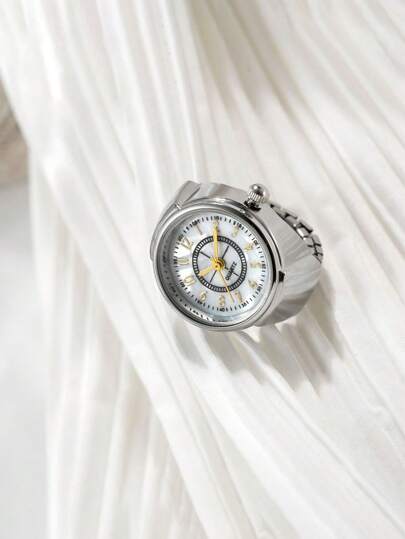 Men Women Round Pointer Finger Quartz Watch - White - View 1