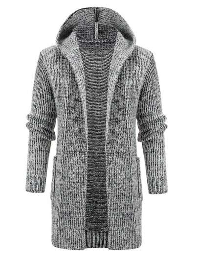 Men's Autumn/Winter Hooded Cardigan, Thick Warm Front Open Long Sleeve Knitted Slim Fit Jacket With Pockets - Grey - View 1
