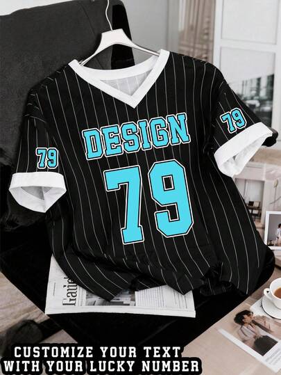 Men's Black Striped T-Shirt, Customizable With Text And Numbers, Front Printing, DIY Design - Black - View 1