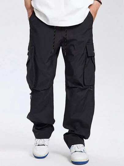 Men's Casual Cargo Pants, Multi-Pocket, Sports Outdoor Trousers, Autumn/Winter - Black - View 1