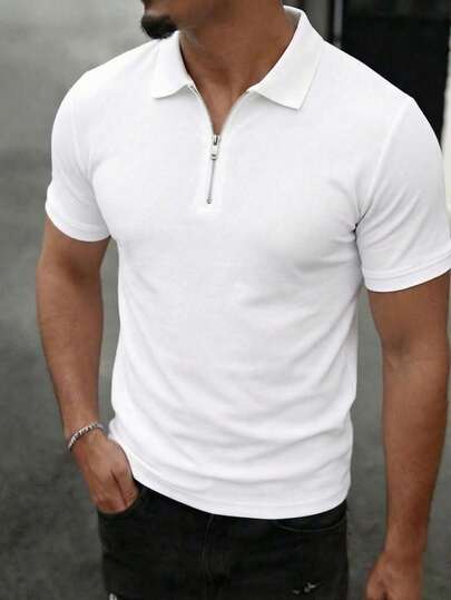 6. Áo thun nam tay ngắn màu trơn, kiểu dáng thường ngày, có khóa kéo, thích hợp cho mùa hè.