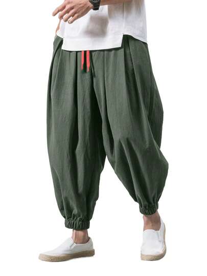 Men's Vintage Coin Pattern Drawstring Waist Loose Casual Solid Color Pants, Fashionable And Versatile, Autumn - Army Green - View 1