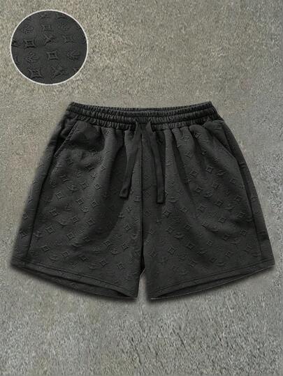 Men's Fashion Jacquard Print Casual Loose Fit Shorts, Summer - Black - View 1
