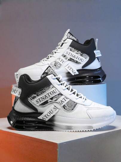 L.S.W.P Men's Fashion Streetwear Sports Shoes, Comfortable Non-Slip Casual Lace-Up Athletic Shoes, Suitable For Men's Outdoor Activities High-Top Sneakers, Unisex Design, Shock-Absorbing Air Cushion Increasing Height Men Shoes - White and Black - View 1