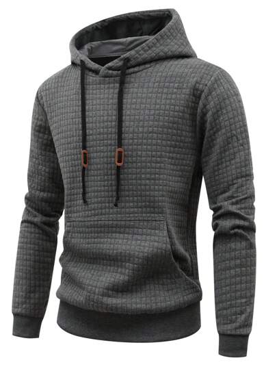 Men's Spring/Autumn Jacquard Pullover Sweatshirt, Plaid Pattern, Pocket, Ribbed Hem - Dark Grey - View 1