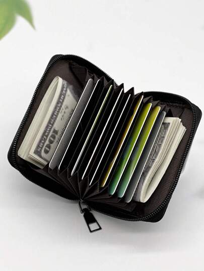 KAIDUCH Men's Multi-Slot Zip Closure Lightweight Portable Card ID Card White-Collar Workers For Male Holiday For Anniversary For Birthday Gift Accessories Gift Present Card Holder Wallet Business Card Holder Credit Card Holder For Men Wallet Mini Wallet Purse Wallet Card Wallet - Black - View 1