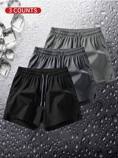 Men's Simple Solid Color Loose Fit Casual Shorts - Dark Grey - View 3