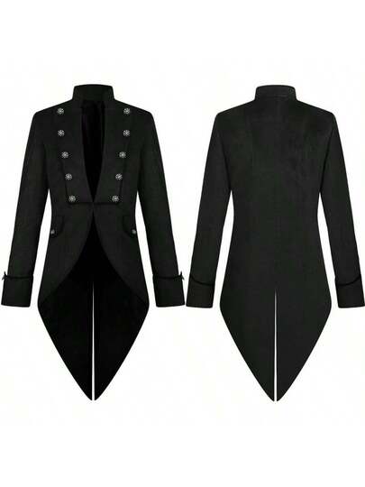 Men's Steampunk Vintage Tailcoat Jacket Gothic Victorian Frock Coat Uniform Halloween Costume - Red - View 1