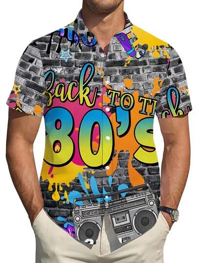 Men's Summer Casual Shark Print Short Sleeve Shirt - Multicolor - View 1