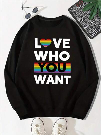 Men's Sweatshirt With Heart Print And Slogan - Black - View 1