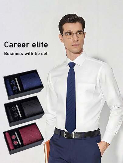 Men's Tie Set, Business Tie, Formal Tie, Tie Clip, Cufflinks, Pocket Square, Gift Box, Hand-Tied Tie, Jacquard Tie, Solid Color Elegant Accessories, Gift, Valentine's Day, Birthday Gift - Multicolor - View 1