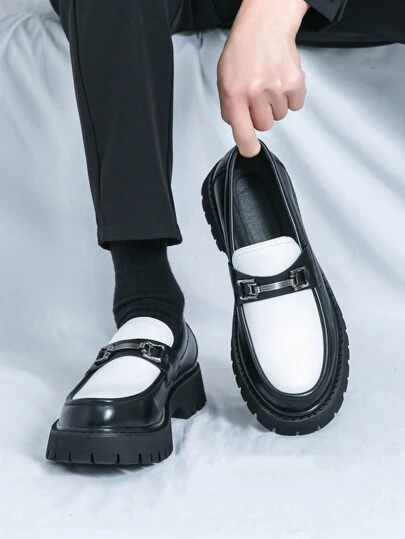 Men's Versatile Business & Casual Shoes, Thick Sole Increase Height One-Touch Black & White Patchwork Loafers - Black and White - View 1
