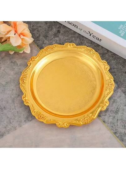 Metal Cake Stand, Afternoon Tea Dessert Tray, Home Living Room Coaster, Snack Plate, Fruit Plate, Jewelry Storage Tray, Decorative Items, Snack Storage Tray, Afternoon Tea Tray, Cup Tray, Jewelry Tray, Holiday Centerpiece Decor, Hotel Home, Office Decor, Birthday Party - Pure Gold - View 1