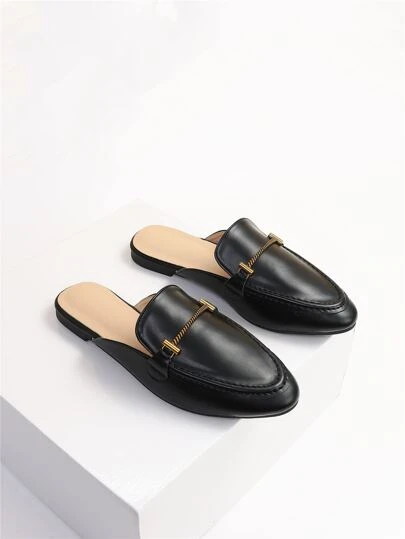 Metal Decor Flat Mules - Black - View 1