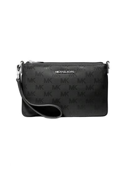Michael Kors Jet Set Travel Small Woven Logo Nylon Convertible Women Wristlet Black - Black - View 1