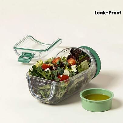 Microwave, Dishwasher, And Fridge Salad Jar Featuring A Side Opening And A Leak-Proof Lid. This Airtight Container Comes With Seasoning Jars And A Stackable Design, Ideal For Meal Prep, Lunch, Dinner, Office Use - Multicolor - View 1
