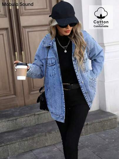 Middle East Versatile Casual Sports Fashion Women's Spring Autumn Winter Thermal Lined Cold-Resistant Apparel, Blue Y2K Student Academic Young Style Denim Jacket, Women - Blue - View 1