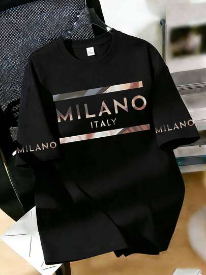 Milanese Alphabet Printed Pattern Women's T-Shirt ,Soft And Comfortable, Spring Summer Daily Casual Wear - Black - View 1