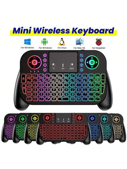 Mini Keyboard With Touchpad 2.4GHz And BT Dual Link - 7 Color Backlight, Multimedia Keys - Compatible With Android TV Box, Smart TV, Projector, PS3 And More! - Black - View 7